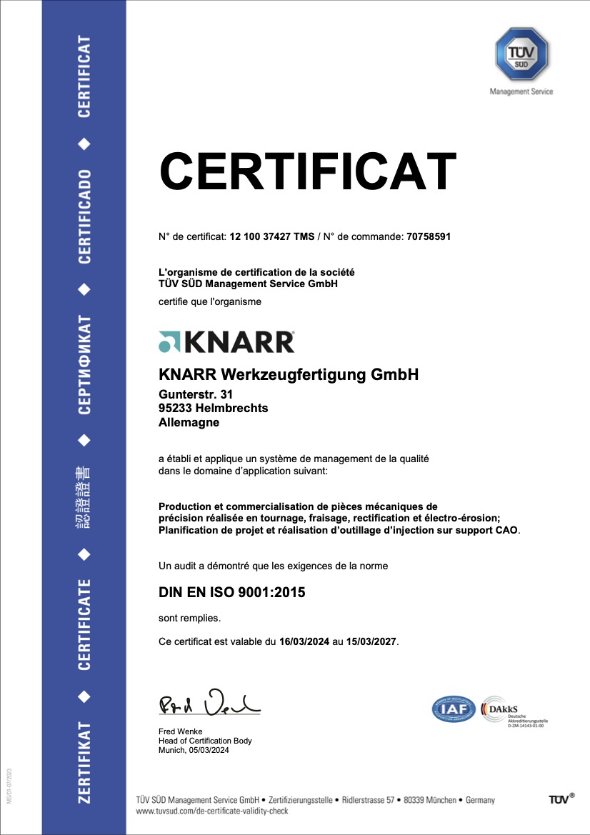 La certification selon la norme DIN EN ISO 9001 est considérée comme une preuve internationalement reconnue des compétences et de l’efficacité d’une entreprise.