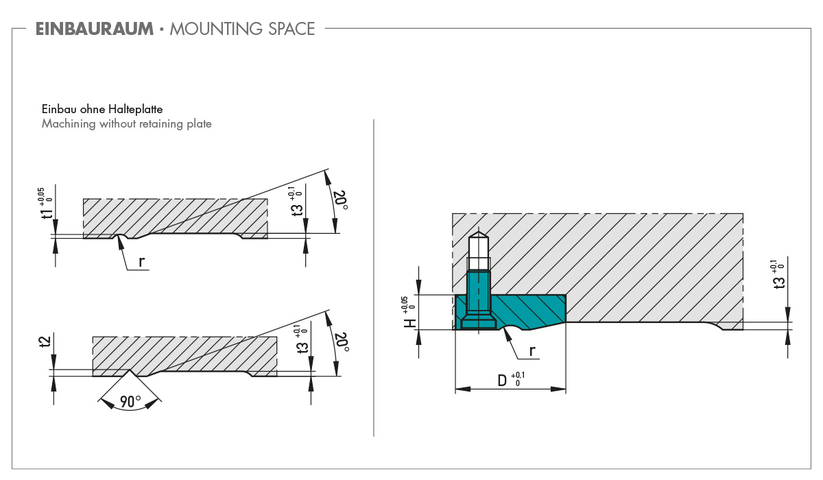 Die Schiebersicherung besteht im Wesentlichen aus einer DLC-beschichteten Achse, einer gehärteten Rolle (60 HRC) sowie austauschbaren Federn mit verschiedenen Haltekräften (1 – 160 kg). Da auf eine Schmierung verzichtet werden kann, ist die Reinraumtauglichkeit in jedem Fall gegeben. Die Temperaturbeständigkeit von 250 °C ist ein weiterer Pluspunkt. Bei kleinen Durchmessern (10 mm,13 mm und 16 mm) wird das Bauteil nur durch eine Schraube fixiert. Die Verdrehsicherung wird dabei durch einen zusätzlichen Zapfen an der Auflagefläche erreicht.
